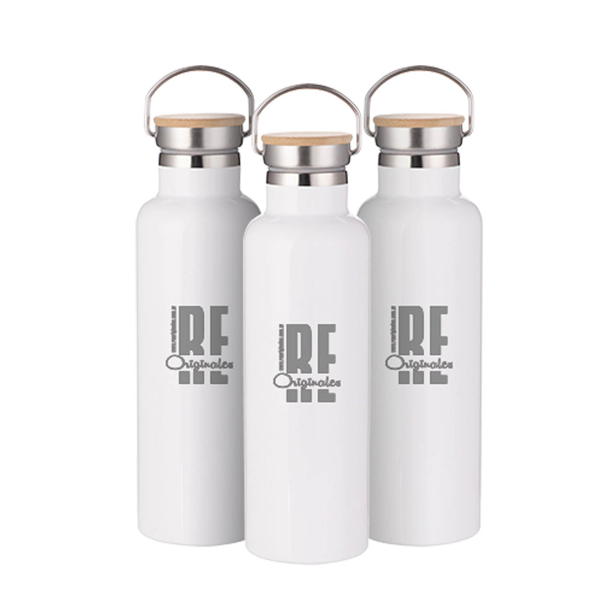 Botella Térmica con Tapa de Bambú personalizada con logo grabado en láser. (consultar grabado en tapa)