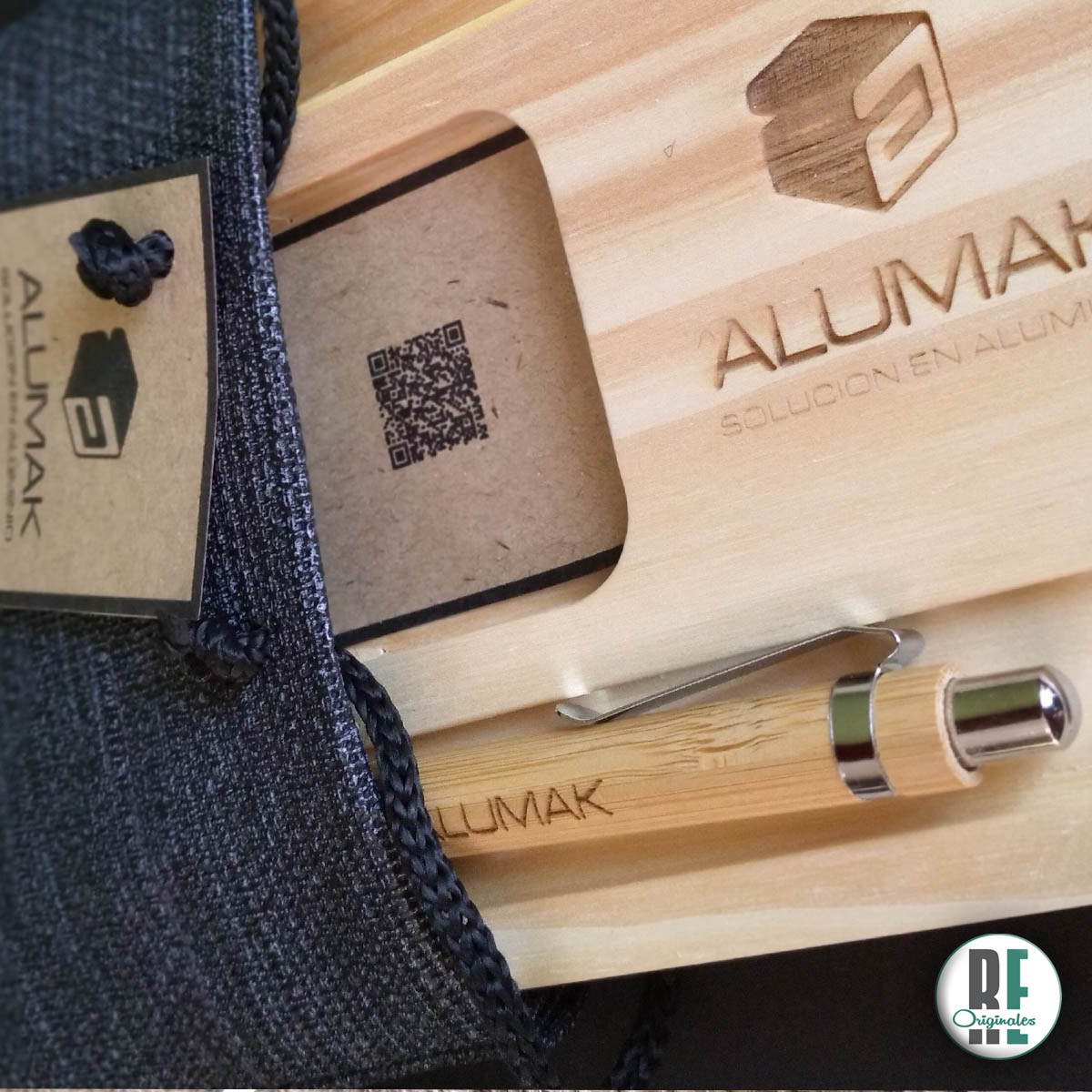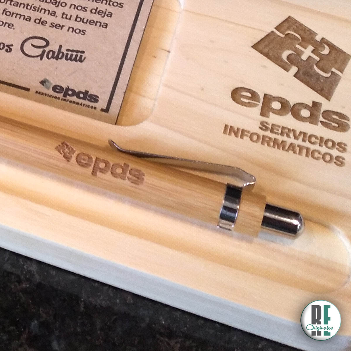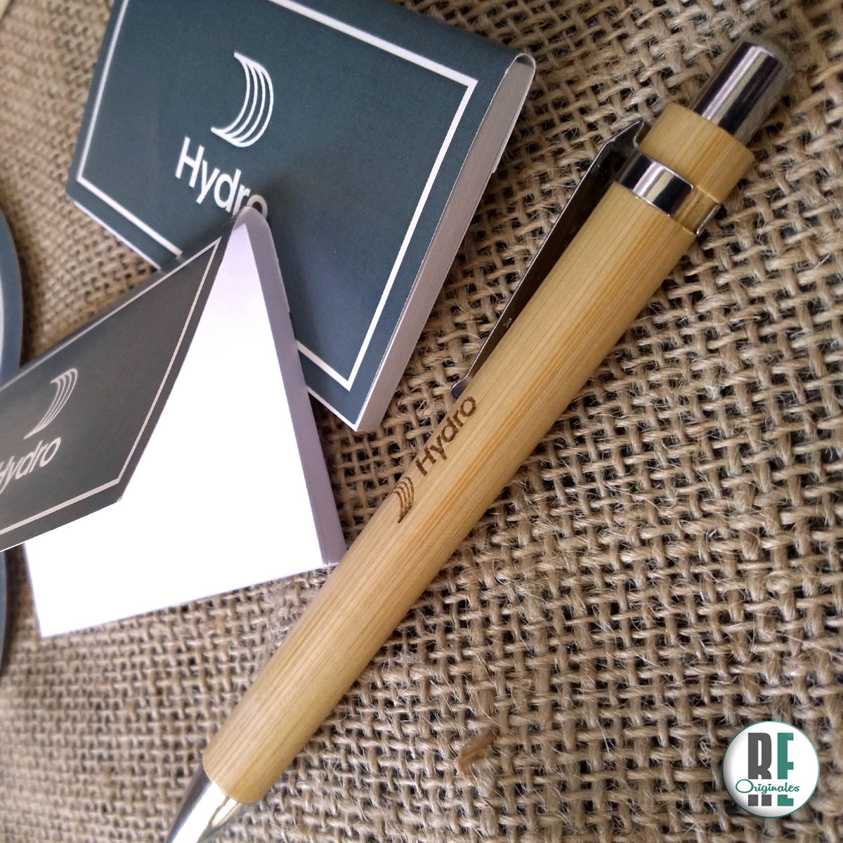 Bolígrafo con cuerpo de madera de bambú, pulsador y puntera